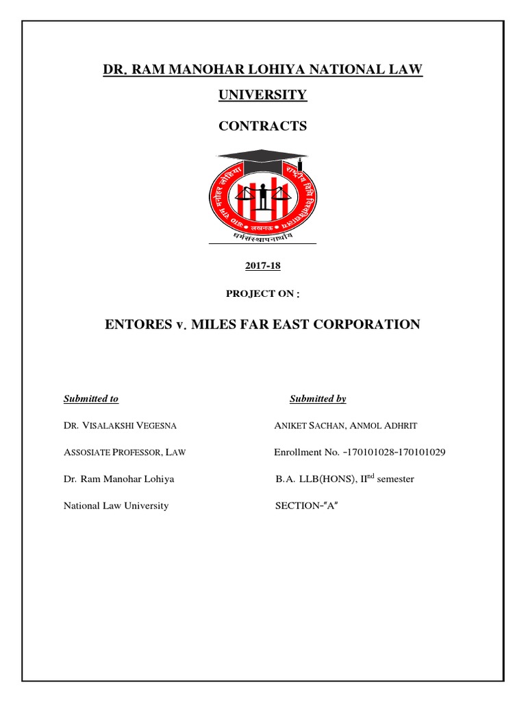 Entores Ltd V Miles Far East Corporation Entores Ltd Miles Far East Corporation 1955 Qb 32 Case Name Entores Ltd Miles Far East Corporation 1955 Qb 327 Facts Studeersnel from d20ohkaloyme4g.cloudfront.net Denning lj found that the regular postal rule did not apply for instantaneous means of communications such as a telex. The relevant telex messages in this case were as follows: Entores ltd v miles far east corporation. This case document summarizes the facts and decision in great peace shipping ltd v tsavliris salvage (international) ltd 2002 ewca civ 1407. Offer subject cable confirmation for account our associates miles far east corporation tokyo up to 400 tons japanese. Entores ltd v miles far east. Where was the contract formed? Contract law provides a bridge between course textbooks and key case judgments.